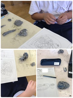 料理やスイーツを見た目そっくりに、表現を工夫して作る学習です。初めは、作りたい料理やスイーツを調べて素材を決めて、構図を考えます。新聞を用いた型作りをして、この後はどう変化するのでしょうか??楽しみです。仕上がりは、作品展で!