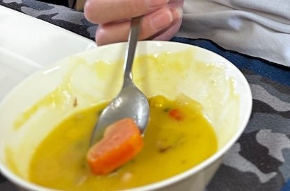 2学期から、カレーやシチュー、ハヤシライスなど、にんじんが入っているメニューについて、各クラスの食管に、一つだけ、星形・ハート形・お花形などの型抜きにんじん「ラッキーにんじん」が入っています。それが大当たりの人は各学級の「ラッキーさん」として給食時に放送で紹介します。10月6日は、2回目、二人目の「ラッキーさん」紹介でした。