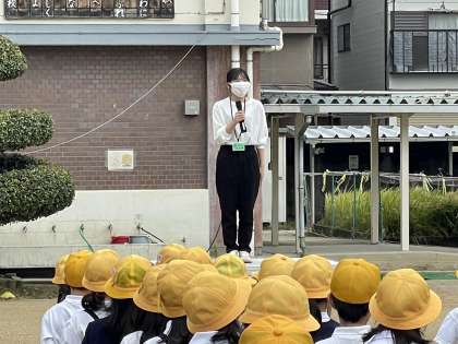 そこで、今日から教育実習を行う方を紹介し、子ども達にあいさつしてもらいました。