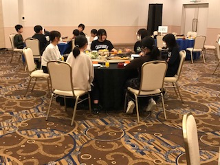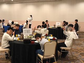 ホテルに入り、豪華な食事の始まりです。美味しそうなお料理を前に、お腹もぺこぺこです。