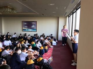 閉舎式を終えました。もうすぐ、ホテルにお別れです。大変お世話になったことに、感謝の気持ちをこめて、みんなでお礼を伝えました。