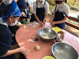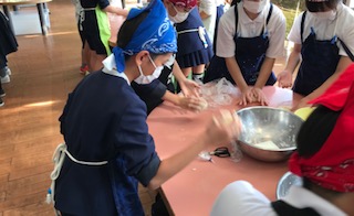 生地をテーブルにたたきつけながらこねる方法もあります。ペッタン!ペッタン!いい音がしています。