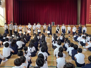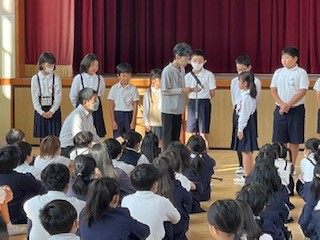 今朝は、多くの児童に「子ども絵画展」の表彰もありました。得意な力をさらに伸ばし、不得手なことにもあきらめず粘り強くチャレンジする子ども達であってほしいと願っています。