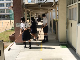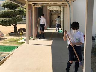 6年生は、初めて来る子ども達のために学校をきれいにしようと、4時間目に学校内を掃除してくれました。午前中授業、一斉下校の日、時間がない中、お掃除をしてくれて本当にご苦労様でした。とても活躍できましたね。