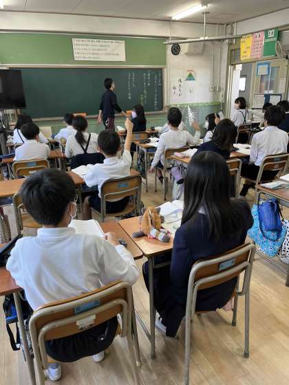 6年1組では、今日、国語の学習で「ヒロシマのうた」を学習していました。