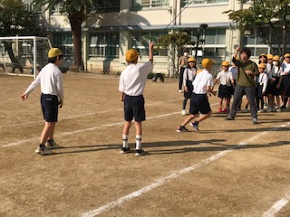 先生も一緒に、入るタイミングを声かけしています。低学年の児童もドキドキしながら、がんばっていました。
