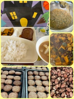 和風ハンバーグ みそ汁 かぼちゃのいとこ煮 ごはん 牛乳
