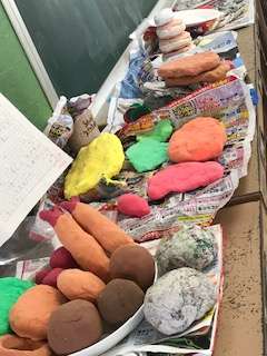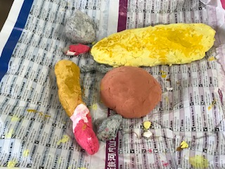 こちらは、粘土の作業、色付けに進んでいます。色を付けると、ますます本物そっくりになってきました!