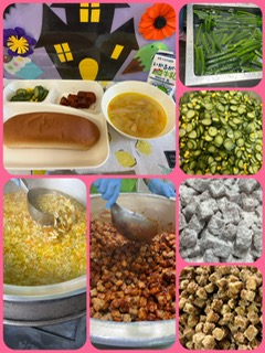 「まぐろのオーロラ煮」は、しょうが汁で下味をつけたまぐろに、でん粉をまぶしてあげ、ケチャップ、赤みそ、砂糖で作ったタレをからませています。子どもたちにとっても人気のある献立です。