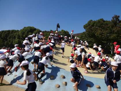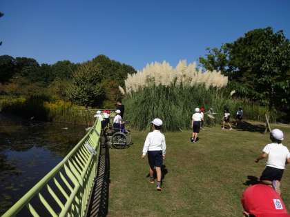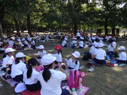 秋のさわやかな天気の中、長居公園に行きました。植物園の中の季節の花々や池に住む生き物を眺めながら散歩しました。広場で元気一杯遊び、おいしいお弁当を食べ、楽しい遠足になりました。