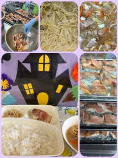 「あかうおのしょうゆだれかけ」は、塩で下味をつけ、焼き物機で焼いたあかうおに、料理酒、みりん、しょうゆをあわせて作ったタレを配缶時にかけています。「もやしのゆずの香あえ」は、ゆずの風味でさっぱりとした味付けになっています。これに風味豊かでお出汁の味がしっかりした豚汁がつきます。