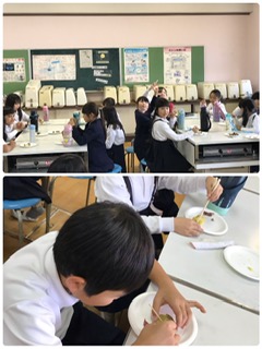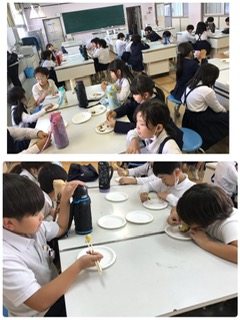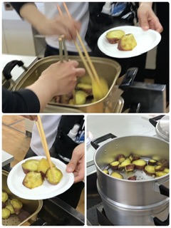 蒸したホクホクのお芋を食べました。できたての柔らかさとかおりに、大満足です。おかわりもしていました。素朴な自然のおやつタイムになりました。