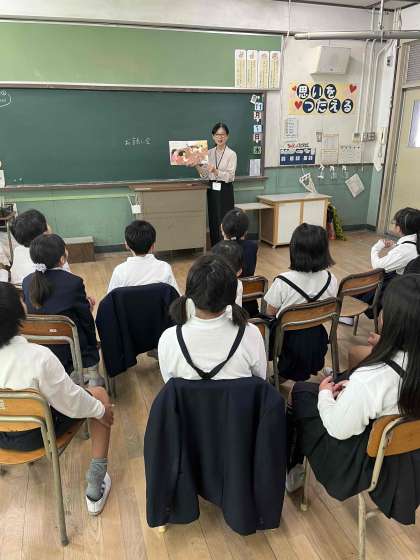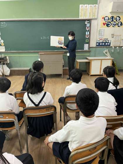 平野図書館の方に来ていただき、3年の教室で「おはなし会」がありました。
