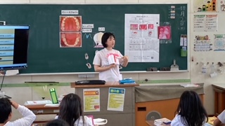 今日は歯科衛生士の先生に来ていただき、むし歯や歯みがきの仕方について学習をしました。
