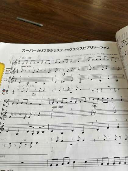 なんと!4年生が音楽の時間に合奏する曲の名前、ディズニーの「メリー・ポピンズ」の挿入歌として有名な曲ですが、名前はとても長く読むのが難しいですね。