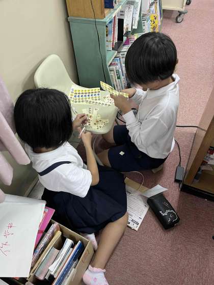 本の読み聞かせ、ビンゴカード、スタンプラリー、だけではなく、高学年が低学年に本を読み聞かせる姿や、ビンゴカードを埋めるために友達と一生懸命、本を読んでいる姿が見られました。