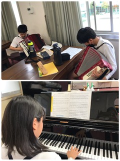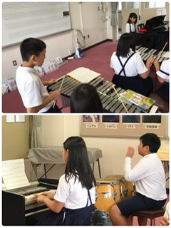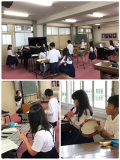5年生が音楽で学校に取り組んでいます。様々な楽器をパートごとにしっかり練習して、合わせます。合奏すると、音色やハーモニーの重なり、交わりに、気持ち良さが感じられます。最後の仕上がりが、とても楽しみですね。