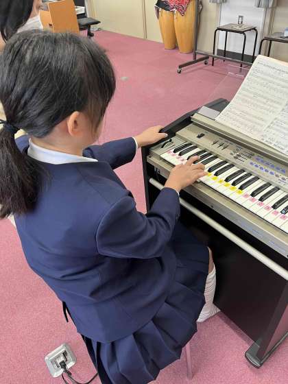 リコーダー、木琴、鉄筋、オルガン、カスタネット、タンバリンそれぞれリズムが違うので、周りの音につられない様に一生懸命演奏してました。まだ、曲の最後までは練習していませんが、もうすぐ全部の小節を演奏します。