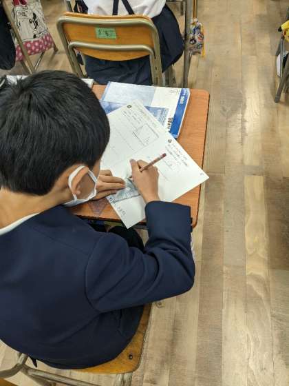 2つの三角定規のどちらを動かすのか、どの直線をひくのか…など、難しかったようですが、先生の説明を聞いたり、練習問題に取り組んだりしながら、理解を深めていきました。