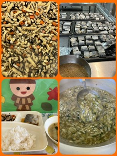「さごしのごまじょうゆかけ」は、さごしに塩で下味をつけて焼き物機で焼き、料理酒、みりん、しょうゆ、いりごまを合わせたタレをかけています。お魚の臭みもなくご飯によく合う一品です。