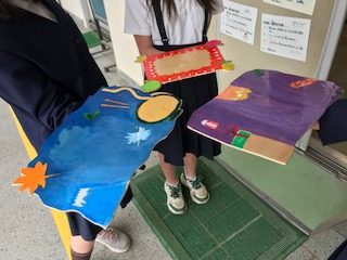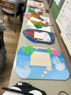 電機ノコギリを使って板をカット、色付けの後ニスを塗ってピカピカになりました。ホワイトボードをセットしたらできあがりです。ご家庭に持ち帰った後に活躍できる夢いっぱいのホワイトボードができそうです。
