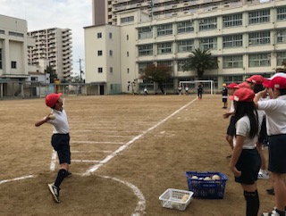 高学年になると、投げるコツやフォームもかなり身についています。遠くまで投げると、友達も喜び合う微笑ましい姿が見られました。