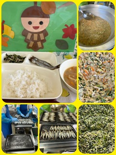 焼きししゃも みそ汁 こまつなのいためもの ごはん 牛乳