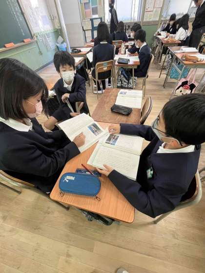 この説明文を学習しています。文章を読み取り、島の課題や解決策をクラスみんなで話し合っていました。