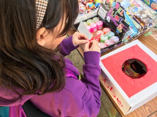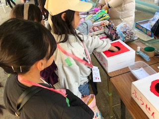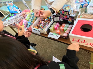 くじ引きも大人気です。ふうせん、おもちゃ、どちらかの種類から選んでくじを引きます。何等でも楽しいグッズが揃っています。