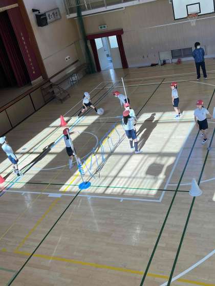 3年生の体育は、「プレルボール」というボール競技をしています。