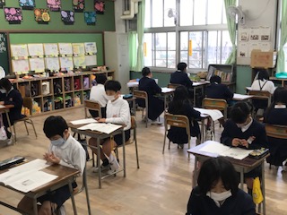 学習内容がたくさん問題に出ていました。思い出しながら、字をていねいに書いて頑張る姿が見られました。