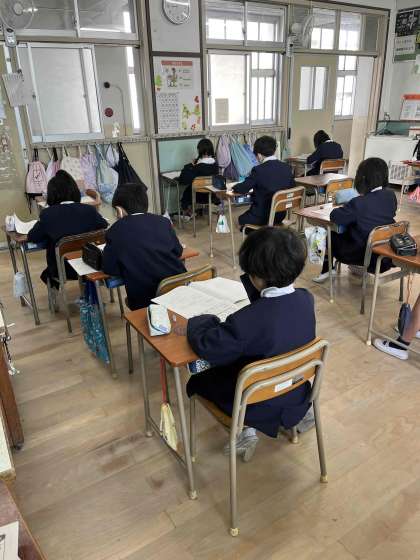 今日も1時間目から4年生は、学校生活の事や家での事についてのアンケート質問紙に、回答しています。