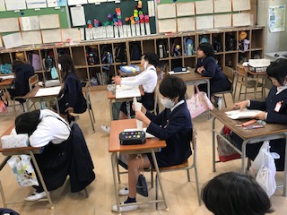 4年生は、今日、1時間目から質問紙を始めました。3時間の調査となりよくがんばりました。この理科が終われば、調査が終了です。