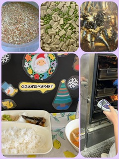 「いわしのしょうが煮」は、砂糖、酢、しょうゆ、料理酒の調味液とともに切りこんぶ、千切りにしたしょうがを加え、1人2尾のいわしを焼き物機で煮ています。骨まで柔らかくとっても美味しく仕上がっていました。