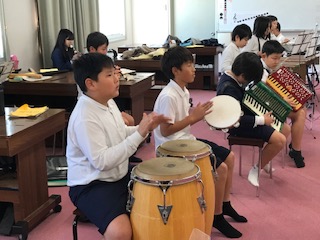 曲の後半になるほど、各パートの息の合わせどころ、互いの音を聴き合って演奏しています。心はアフリカの大草原です。