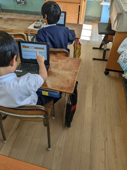 15日(金)は、1年生が学習者用端末を使って、いじめアンケートに取り組んでいました。1年のはじめは紙面調査でしたが、今では回答を入力できるようになりました。