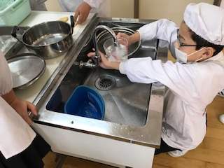 5年2組 家庭科 調理実習 ご飯とみそ汁2