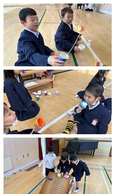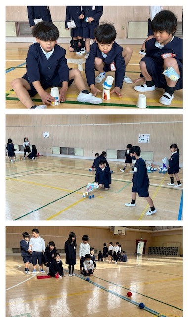 手作りおもちゃが9種類もあって、1年生は夢中で遊んでいました。