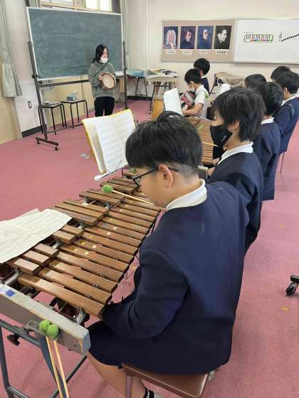 今日も5年生の合奏「アフリカンシンフォニー」はとても壮大で、木琴や鉄琴が地面から響き渡り、リコーダーやアコーディオンが綺麗な音を奏でていました。