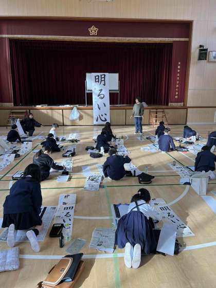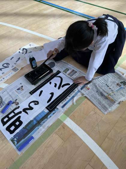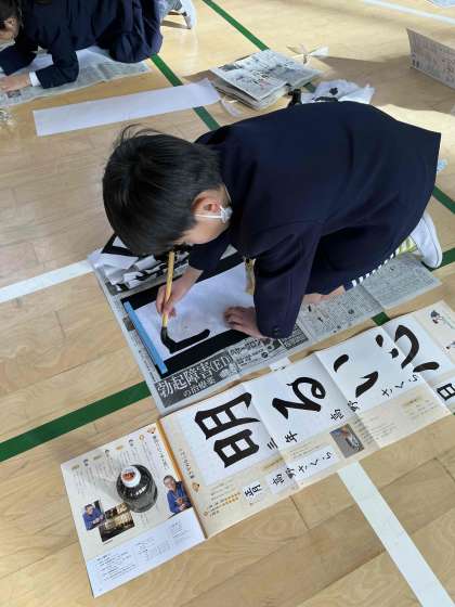 今日は鏡開きの日ですね。残念ながら、お餅を食べることは出来ませんが、無病息災を願って「書初め」をしました。一文字ずつ丁寧に書きました。