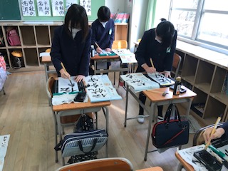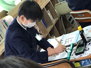 心静かに、書の世界を味わっていました。さすが6年、集中して取り組む様子が、凛としていました。