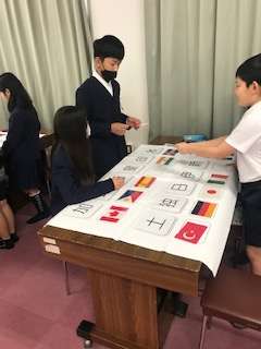 Where do you want to go ? から、世界の国々の名前・国旗について復習しました。そして、今回は、ゲームを取り入れながら、漢字で表現された国名について学びました。音や意味が漢字に置き換わっており、子ども達にとって興味深い学習となりました