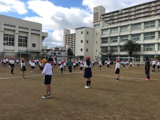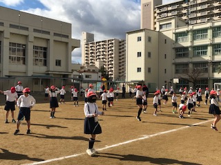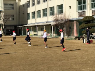 「なわとび王」というのは、例年この時期に行う耐寒運動です。2時間目終了後の休憩時間に運動場でなわとびを行います。第一回目の今日、とても寒い日になりましたが、上着を脱いでいろいろな跳び方にチャレンジしていました。音楽に合わせて頑張る様子が見られました。この機会になわとびの練習をがんばり、できることや回数の記録を伸ばしてほしいと思います。「とびなわ」の用意を忘れないようお願いします。