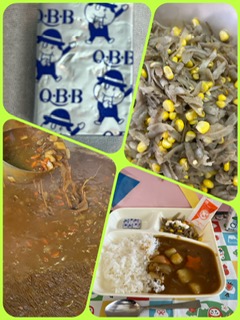 牛肉と金時豆のカレーライス ごぼうサラダ(ノンエッグドレッシング) 固形チーズ ごはん 牛乳