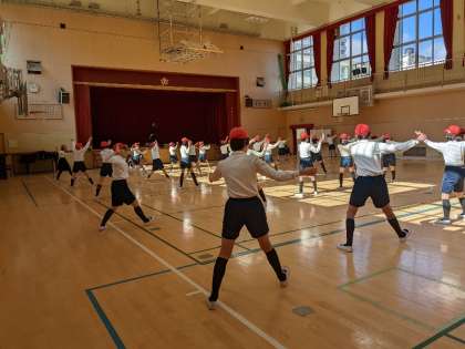 6年生は、体育の表現運動で、南中ソーランに取り組んでいます。
