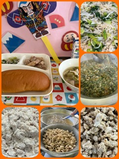 「鶏肉のからあげ」は、鶏肉(もも)にしょうが、にんにくなどで下味をつけ、でんぷんをまぶし、風味よくあげています。子どもたちは、とっても喜んで食べていました。