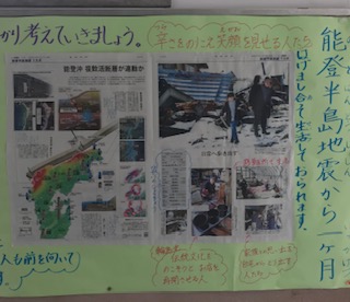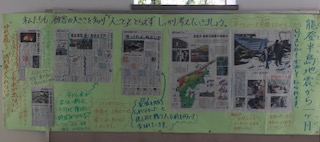 新聞の被災地の記事は辛いものではありますが、現実に起こっていることや人々が強く生き抜く様子を子ども達に伝え、他人事と捉えずに考えてほしいと思います。