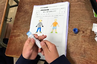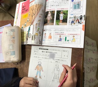 動画教材やワークシートを使って「季節に応じた衣服」について考え学んでいます。「季節に応じた衣服」とは「季節を考えた過ごしやすい身なり」とも言えます。「活動に応じた・適した身なり」の考え方に通じること、家庭科からも見出しなみや規律について考えることができますね。