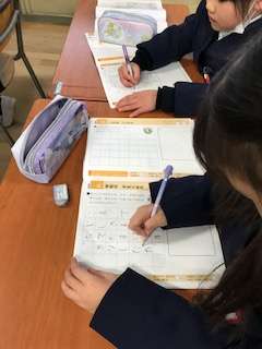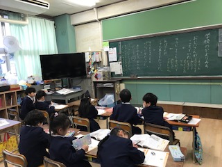 道徳の学習です。教科書の話を読んで、考え、話し合い、自分の考えを「心のノート」に書くことができるようになりました。2年生に向けて、しっかりと道徳面でも成長しています。