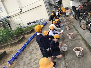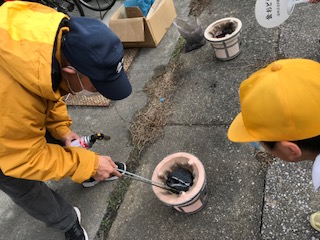 青少年指導員の方お二人をゲストティチャーとしてお招きして、七輪の火おこしと昔の火おこしの体験授業をしていただきました。